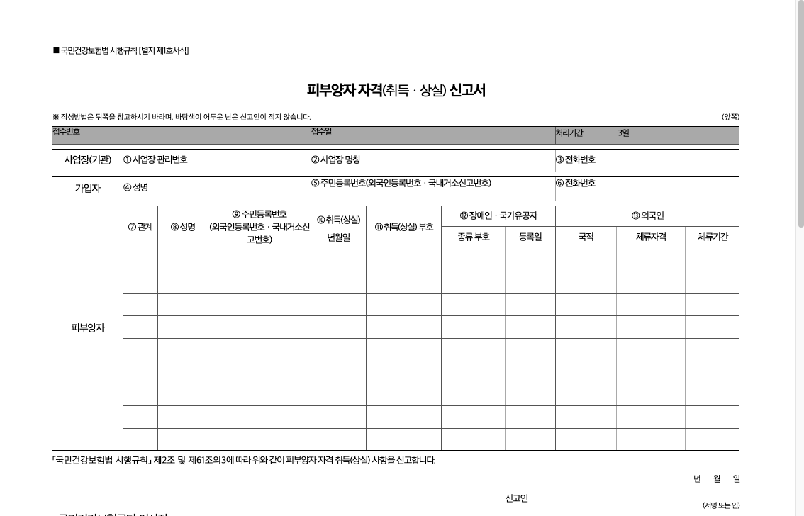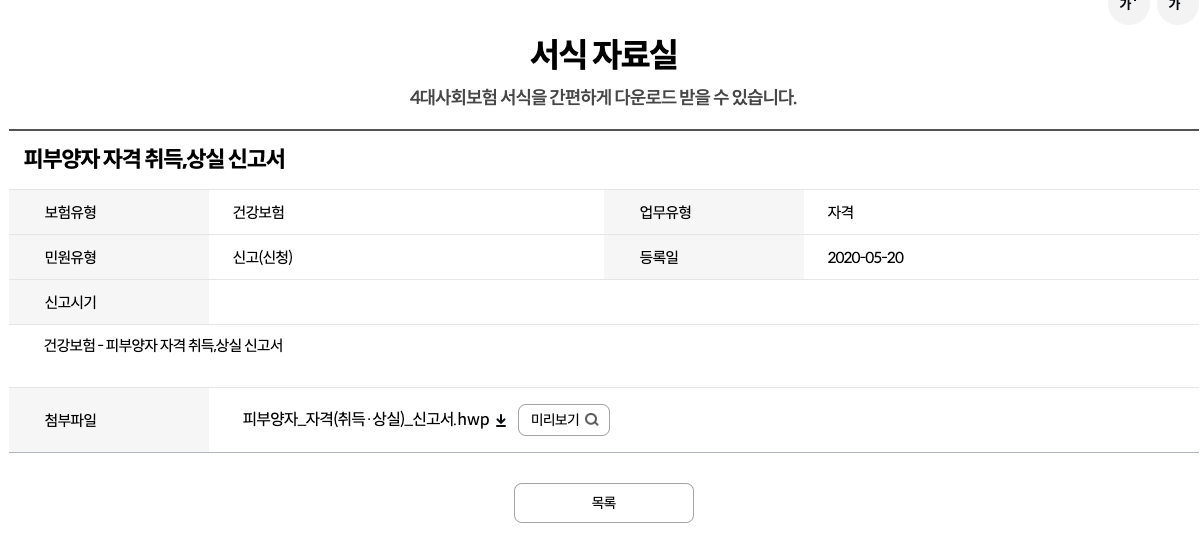 📍건강보험 피부양자 자격 신고서 다운로드