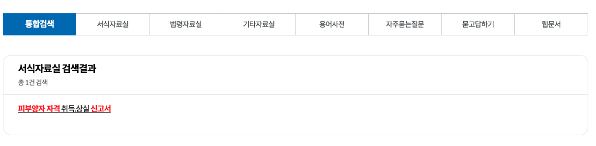 그러면 위의 화면처럼 [피부양자 자격 취득, 상실 신고서]의 검색결과가 보이는데요.