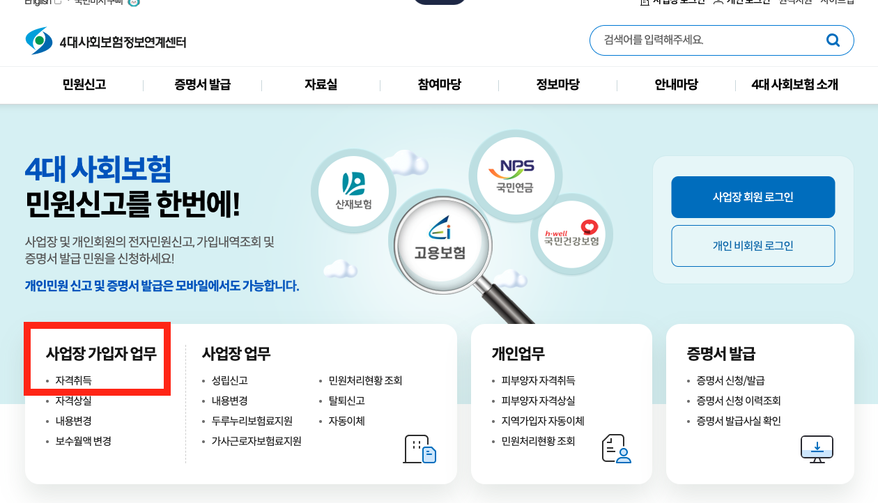 (4대 사회보험정보연계센터 링크 접속으로 편하게 방문하세요!)