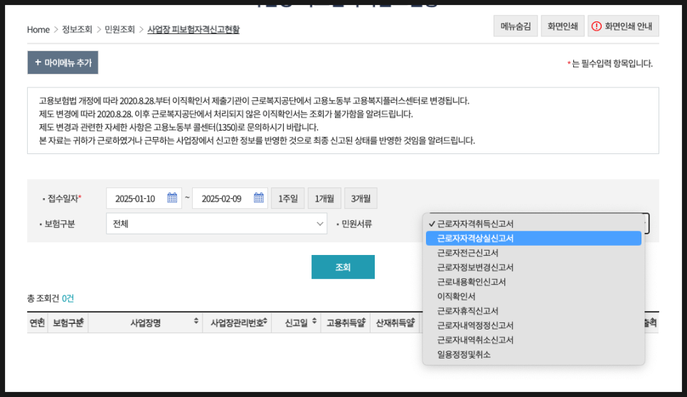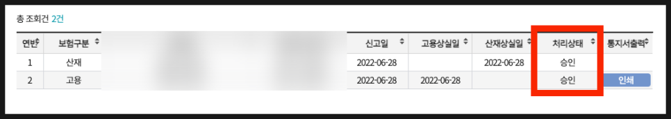 고용보험 피보험자격 상실 신고서 확인 방법