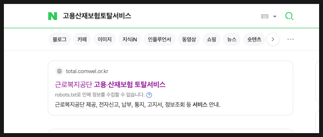 '고용산재보험 토털 서비스' 검색 화면