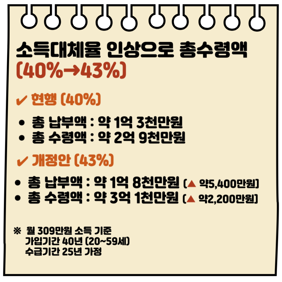 월 309만 원의 소득을 받는 가입자가 40년간 가입하고 25년간 연금을 수급한다는 가정으로 계산했을 때