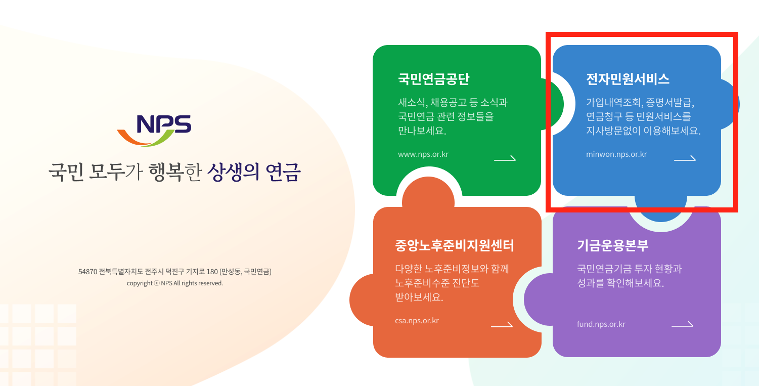 우선 국민연금전자민원서비스에 접속해 줍니다.