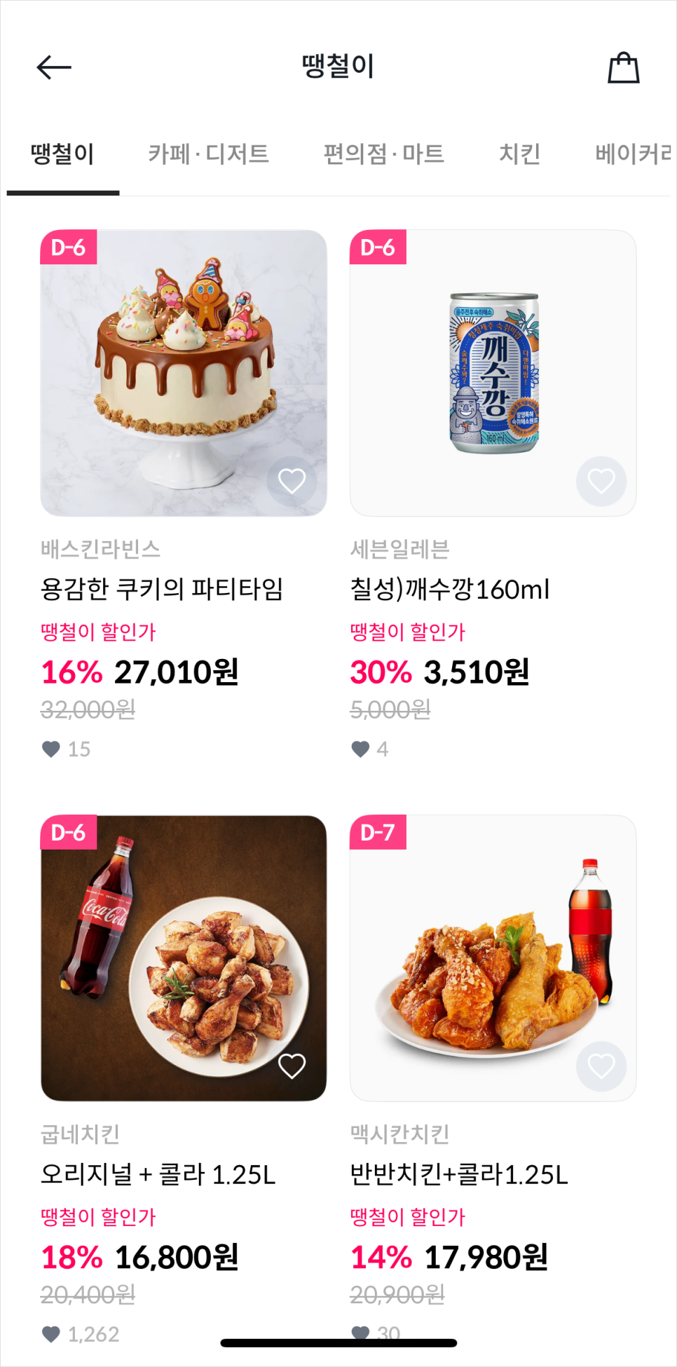 그중에서 다른 앱과 다른 점은 "땡철이"가 있는데요. 판매기한이 얼마 남지 않은 기프티콘을 더 저렴하게 구매할 수 있는 기회입니다.