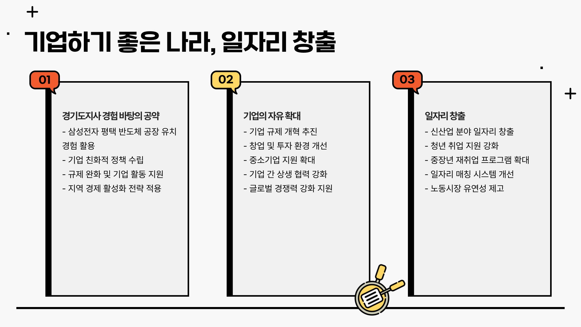 김문수 대선공약의 첫 번째 핵심은 ‘기업 하기 좋은 나라, 일자리 창출’입니다.