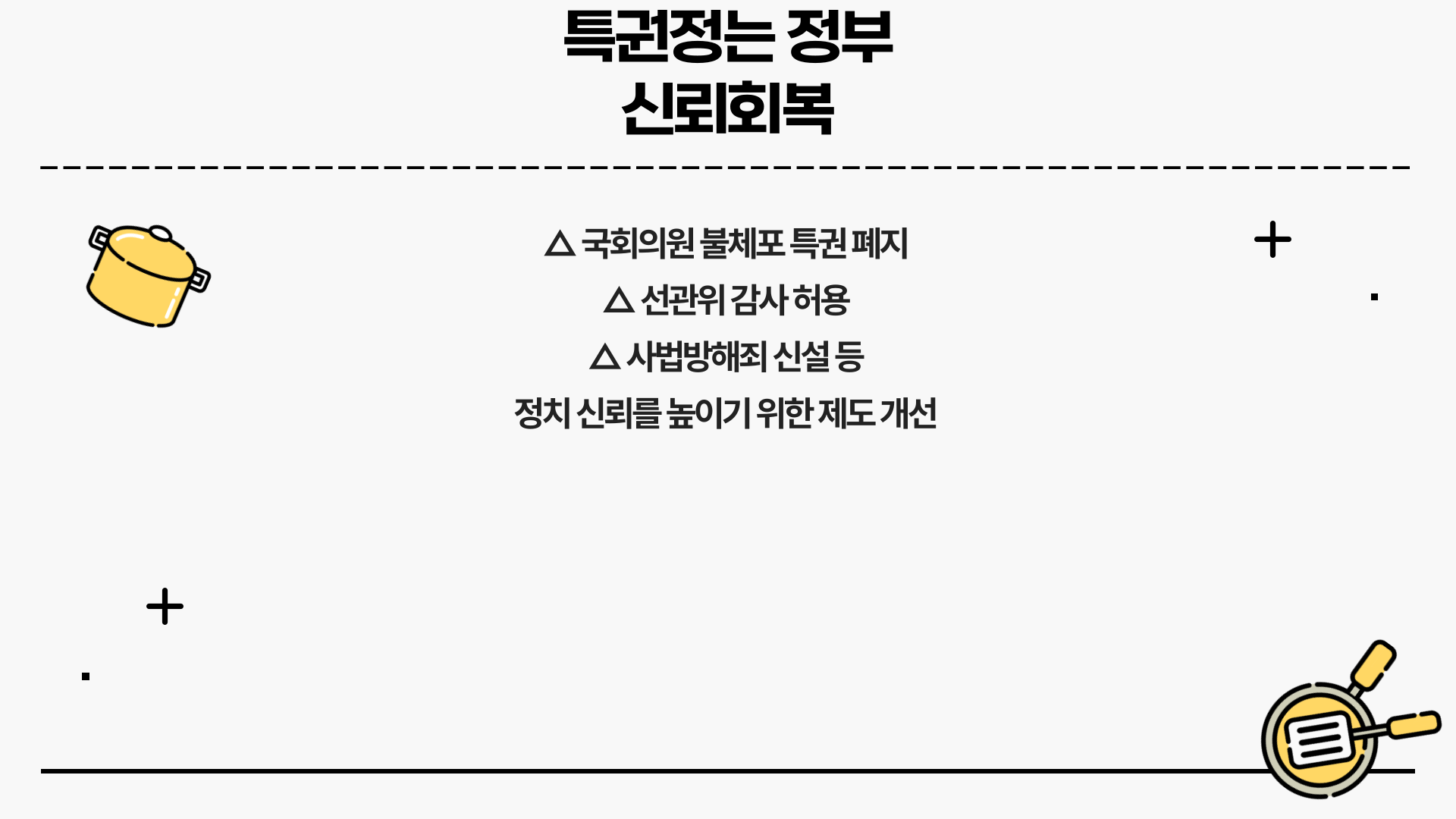 국회의원 불체포 특권 폐지, 선관위 감사 허용, 사법방해죄 신설 등 정치 신뢰를 높이기 위한 제도 개선이 포함되어 있습니다. 김문수 대선공약은 국민 눈높이에 맞는 정치 개혁을 실현하겠다는 강한 의지를 보입니다.