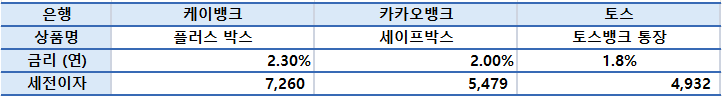 세이프 박스라는 파킹 통장이 존재하는데요.