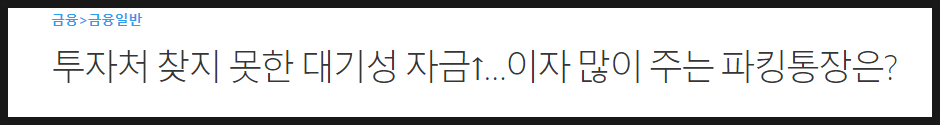 투자처를 찾지 못한 목돈이 파킹 통장에 몰린다는 뉴스