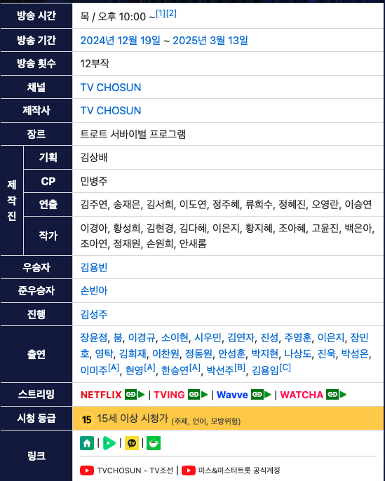 • 방송사: TV CHOSUN (TV조선)