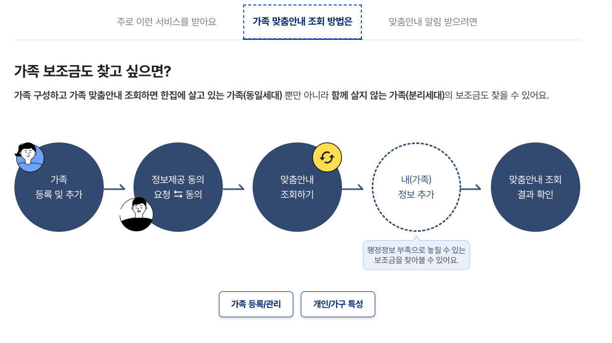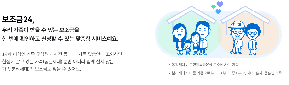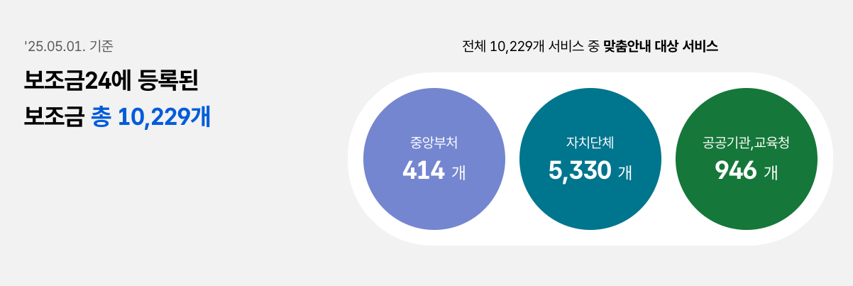개인이 받을 수 있는 맞춤형 보조금 정보를 한눈에 확인하고 신청까지 할 수 있는 서비스 입니
