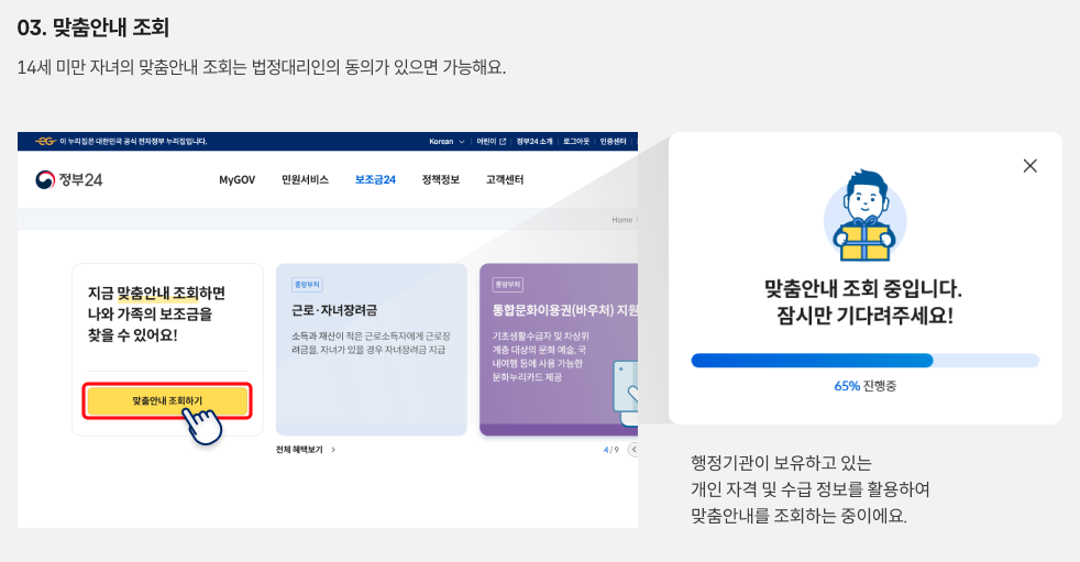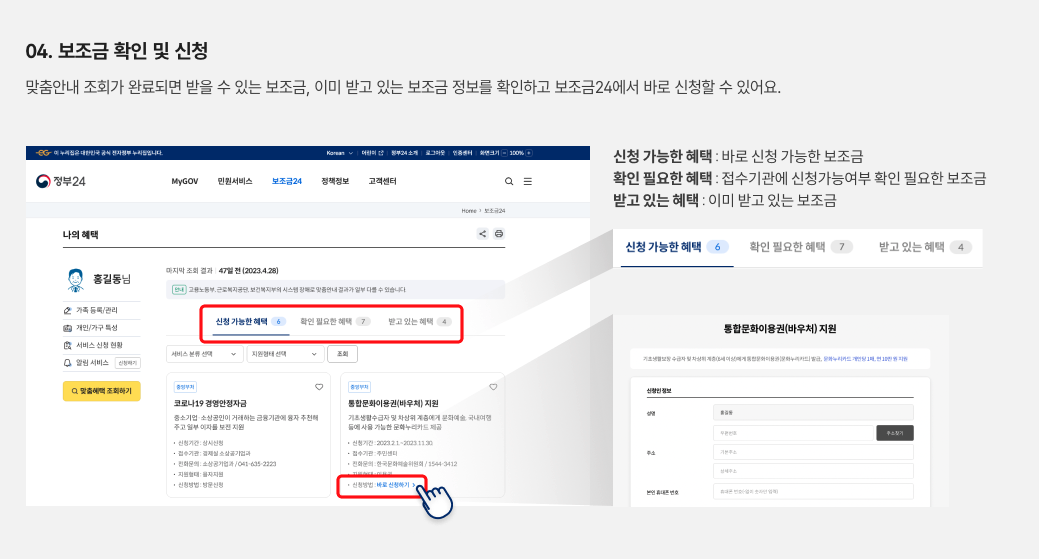 한 번에 확인하고 신청까지 연결해 주는 맞춤형 안내 서비스입니다.