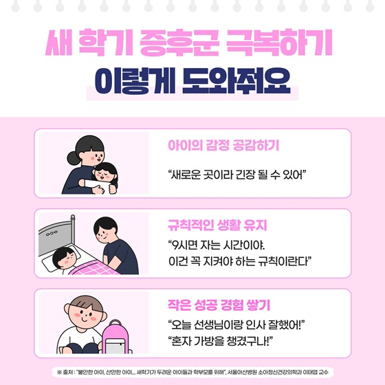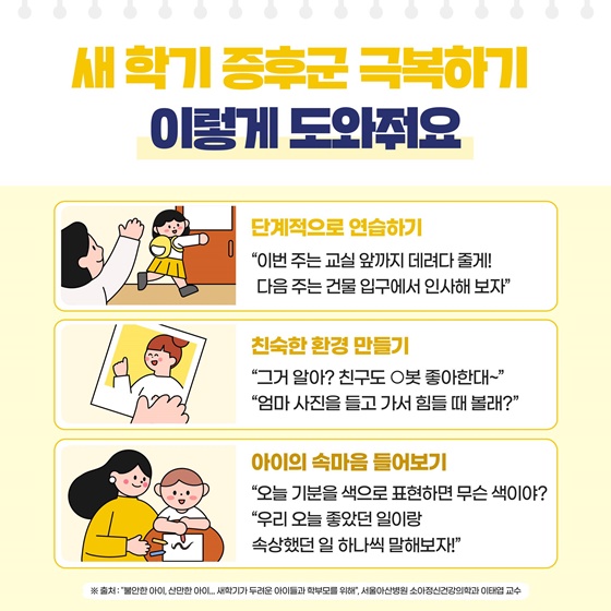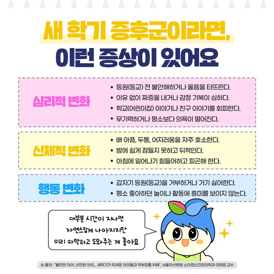 새 학기 증후군이 심해지면 장기적인 학습 태도와 사회성 발달에도 영향을 줄 수 있기 때문에 빠른 대처가 필요합니다.