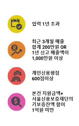 - 본건 지원금액 + 서울신용보증재단의 기보증 잔액의 합이 1억 원을 초과하는 경우 지원 불가