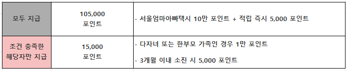 - 3개월 내 택시 포인트 전액 소진 시 (해당자) : 5천 원