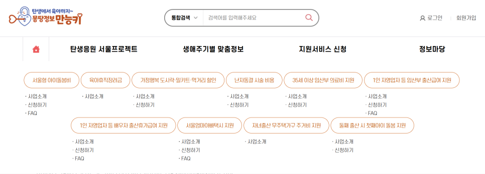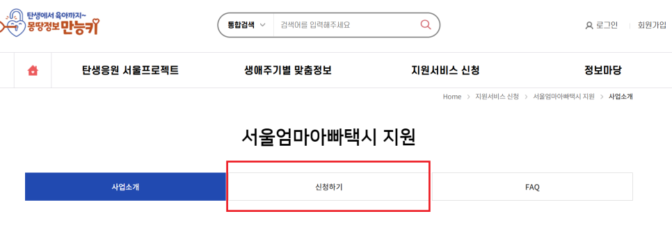 2. [몽땅 정보 만능키] 홈페이지에서 "서울 엄마 아빠 택시지원"을 신청하기 눌러줍니다.