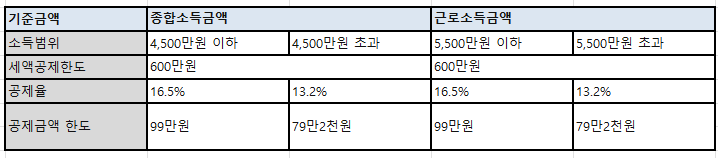 그중에서도 종합소득액, 근로소득액에 따라 그 공제율은 달라지게 됩니다.