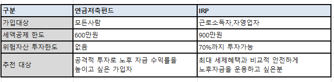 IRP와 연금저축펀드의 차이점