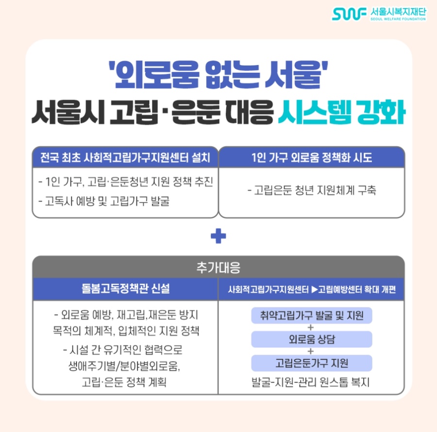 이러한 문제들을 해결하기 위해 서울시에서는 외로움안녕 120 서비스를 시범운영한 후 정식출시를 계획하고 있습니다.