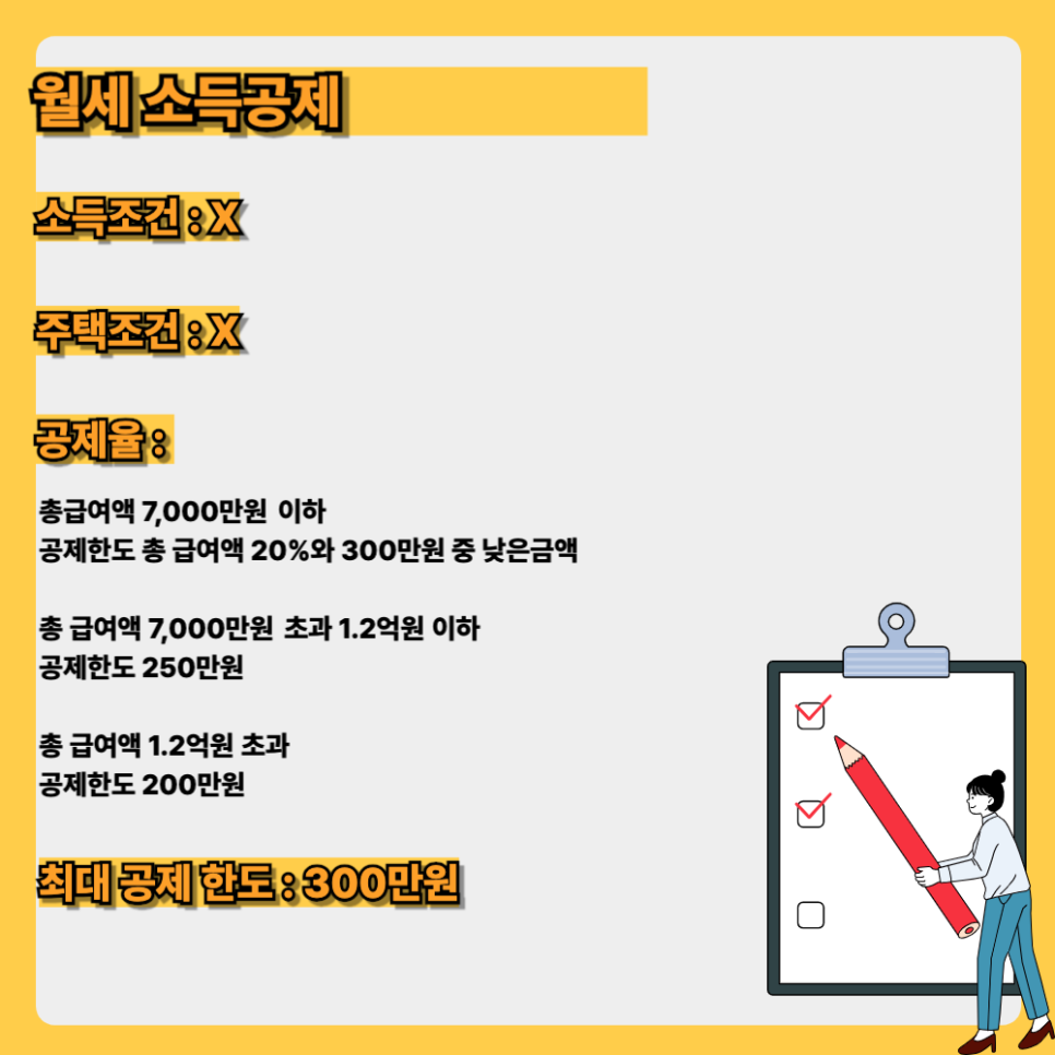 월세 소득공제의 경우 급여 액수나 주택규모 제한 없이
