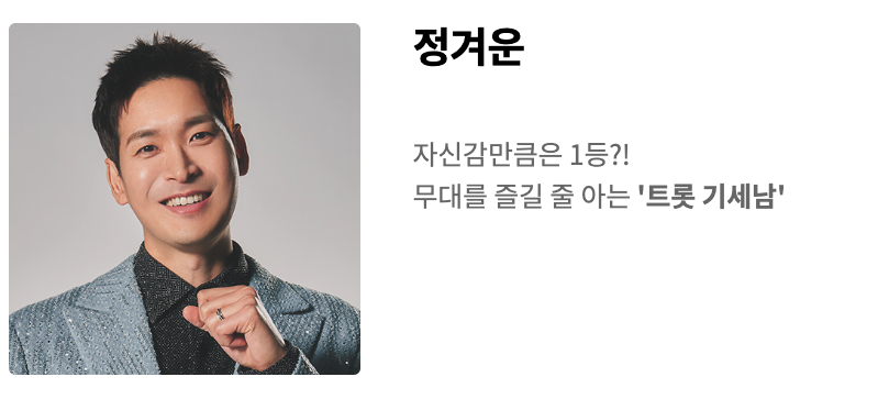 - 정겨운 – 무대를 즐길 줄 아는 자신감 넘치는 트롯 기세남.