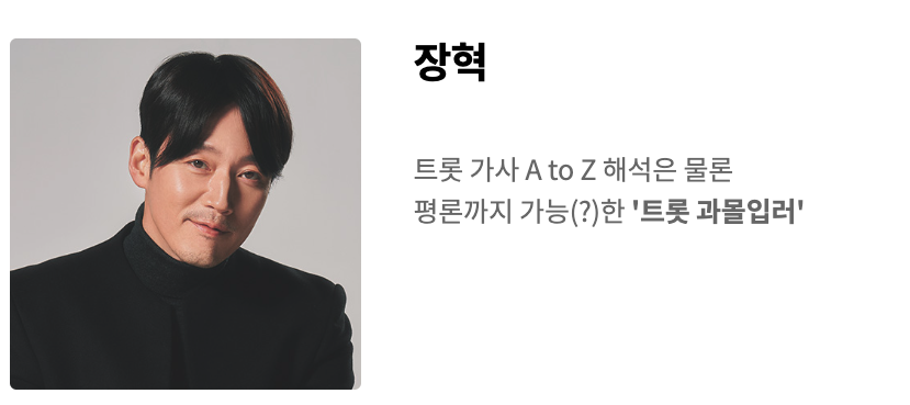 - 장혁 – 트롯 가사를 해석하고 평론할 수 있는 트롯 과몰입러.