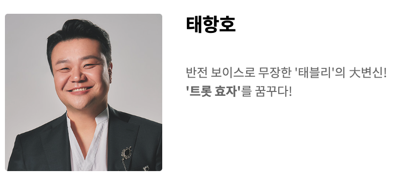 - 태항호 – 독특한 보이스로 트롯 효자를 꿈꾸는 태블리.