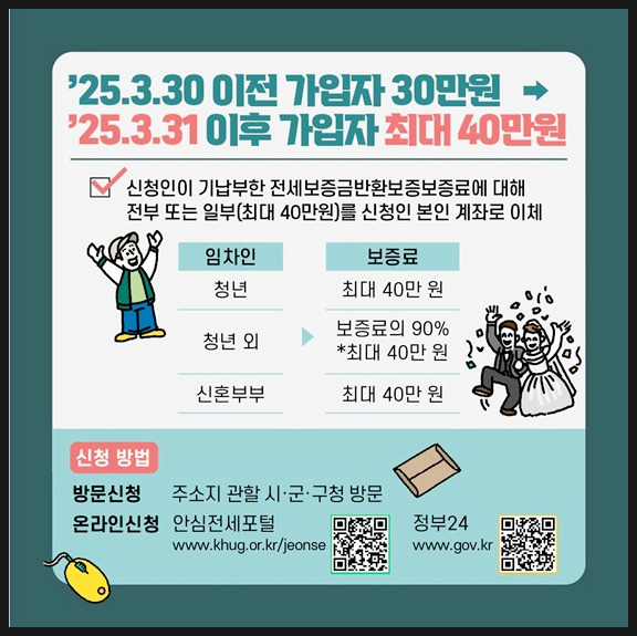 상향된 지원금은 2025년 3월 31일 이후 전세 보증금 반환보증에 가입한 신청인만 지원 대상이 됩니다.