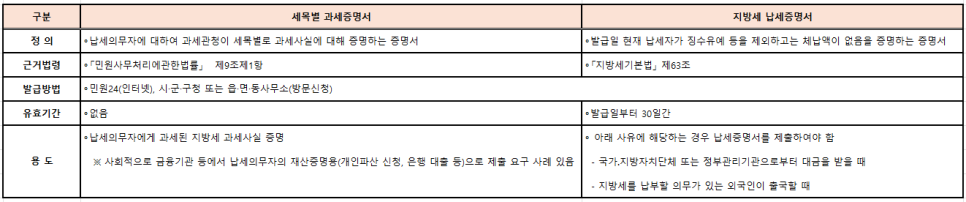 지방세 세목별 과세증명서와 지방세 납세증명서 차이점