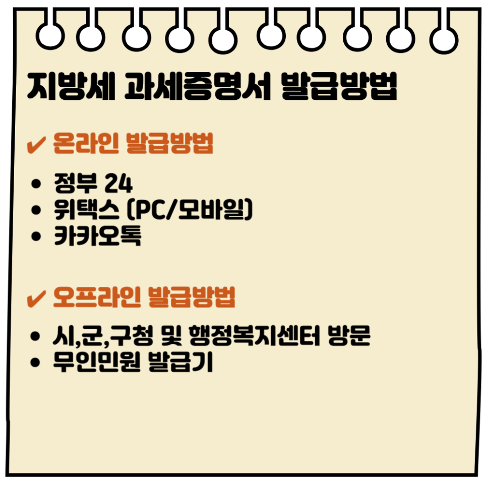 지방세 세목별 과세 증명서 온/오프라인 발급방법