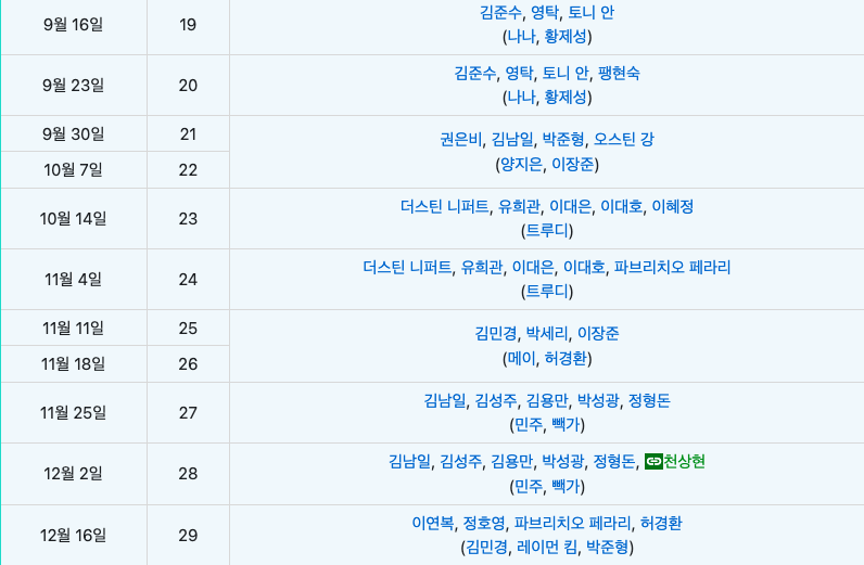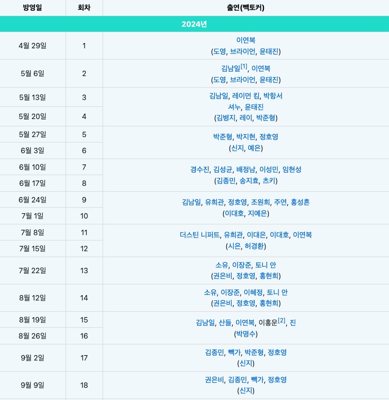 원하는 게스트들이 나오는때를 확인해서 회차를 보시면 좋을것같습니다.