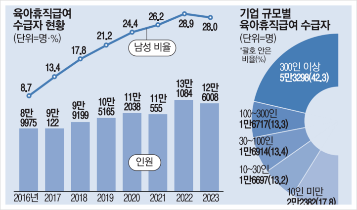 고용노동부에 따르면 2023년 전체 육아휴직자 중