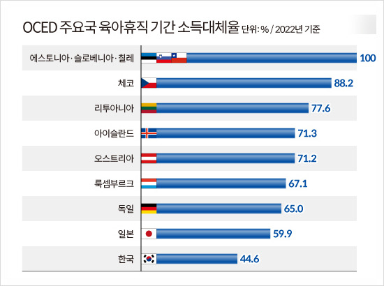 OECD 주요 국가별 육아휴직 기간 소득대체율