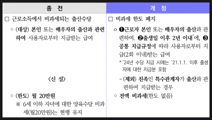 2025년부터는 기존에 있던 양육수당 비과세 혜택도 유지하고 추가로 비과세 한도를 폐지해 출산지원금까지 비과세 혜택으로 확대되었습니다.
