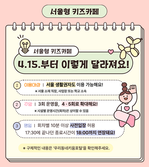 (4월 15일부터 서울 생활권자도 서울형키즈카페 이용대상에 포함)