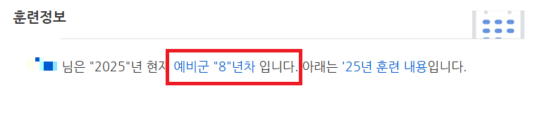 그럼 위의 화면처럼 본인의 예비군 연차가 나오게 됩니다.