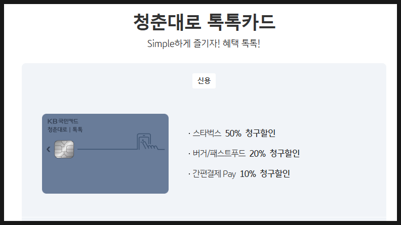 1. 신용카드 추천 KB국민카드의 청춘대로 톡톡 카드