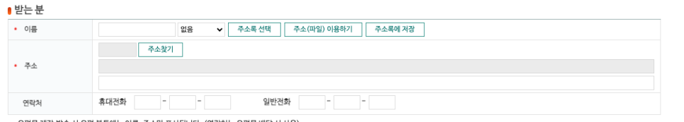 4. 받는 분에 수신을 하는 분의 성명과 주소를 입력해 줍니다.