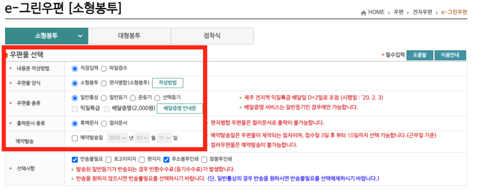 E-그린우편 보내는 방법과 소요일수 및 가격