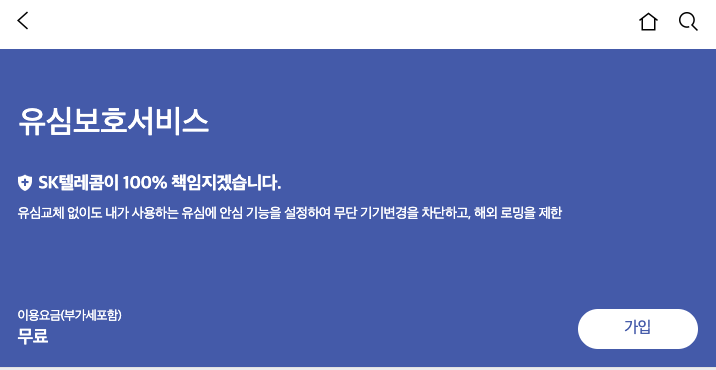 해당 메뉴에서 유심보호서비스를 '신청'으로 설정하면 됩니다. 설정 이후에는 인증 절차를 거쳐야만 유심 변경이나 이용이 가능합니다. - 고객센터 또는 지점 방문 신청도 가능